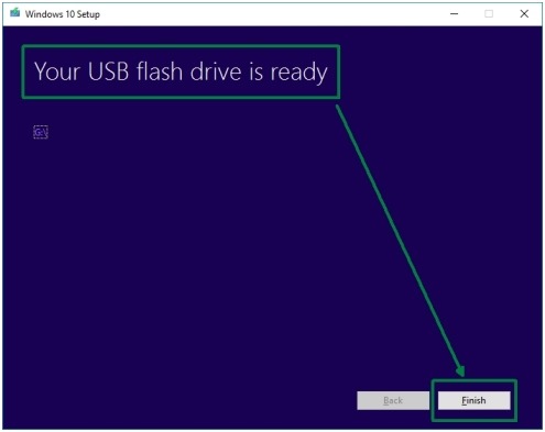 - Once Complete, the final screen will inform that your ‘USB Flash Drive ‘is Ready’