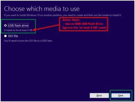 - Select ‘USB Flash Drive’ on the ‘Choose which media to use’ page; Click Next